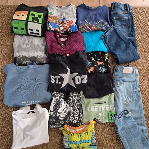 Lasten farkut ja huppari. Farkkujen merkki Detroit ja kokometkintä 116 cm. Joustava vyötäröresori + kiristysnsuhat. Huppari on H&M n ja kokomerkintä 128 cm.