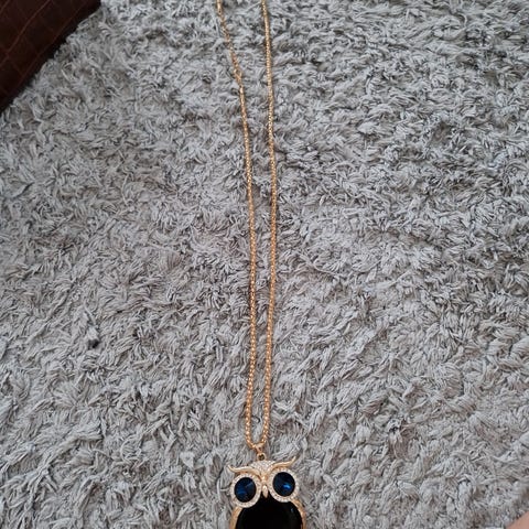 Kaunis pitkä kaulakoru. Enkelinsiipien suojassa oleva sininen pallo, joka helisee kevyesti. Ylettyy ylävatsalle.