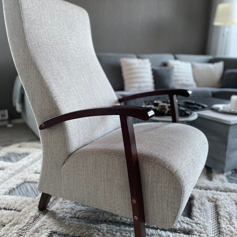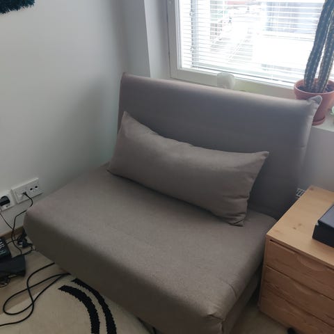 Nojatuoli, jonka saa levitettyä vuoteeksi. Erittäin hyvässä kunnossa. Ei näkyviä käytön jälkiä. Halutessaan saa mukaan sopivan kokoisen petauspatjan. Kätevä pieneen tilaan johon tarvitaan mahdollisuus vieras petiin.