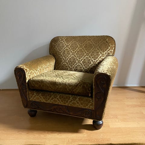 Myydään uuteen kotiin ihana keltainen vintage-nojatuoli. Kunto hyvä. Ostettu vintageliikkeestä. Istuintyynyssä irrotettava päällinen, selkänojan tyyny sekä istuintyyny irralliset. Vain nouto. Arabianranta/hermanni.