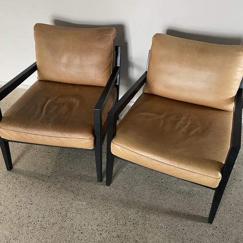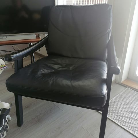 Mustat, nahkatyynyillä olevat Furninovan valmistamat Revir nojatuolit.