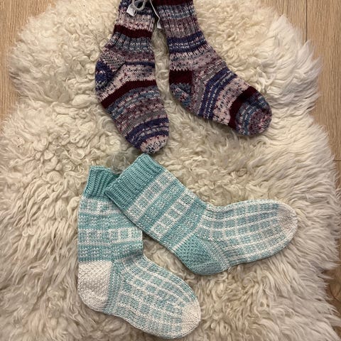Myydään 3 paria merinovillasukkia. Koko 25-27. Jonkin verran nukkaa, mutta edelleen kelpo sukat seuraavalle. Mustissa koko merkintä näyttää isompaa.
