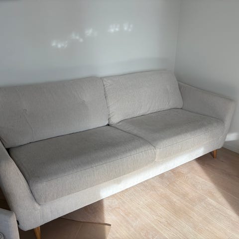 Pehmeä untuvatäytteinen kolmen istuttava sohva. Päälliset konepestäviä. Nouto Tuusula Riihikallio