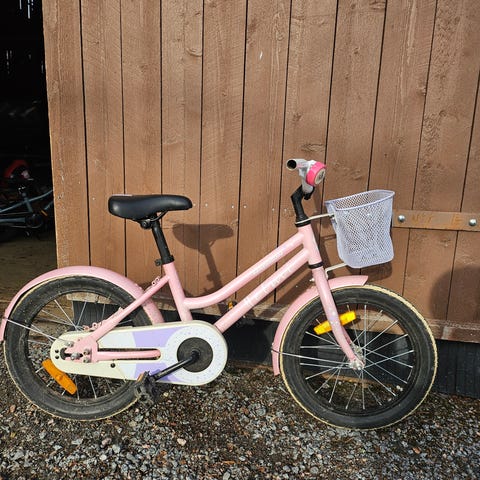 Tyttöjen pyörä, lasten polkupyörä, ensipyörä, 4-vuotiaalle, 5-vuotiaalle, 6-vuotiaalle, 100 cm, 110 cm, jalkajarru, käsijarru, pinkki, hopeinen, matalarunkoinen, kaupunkipyörä, kesäpyörä, huollettu, edullinen, Hattula, Kanta-Häme, polkupyörä