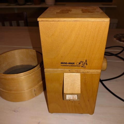 Valmistettu puusta, perinteiset keraamiset jauhinkivet. Sopii erinomaisesti viljojen, siementen ja jyvien jauhamiseen kotona. Mukaan puinen kulho ja kauha.