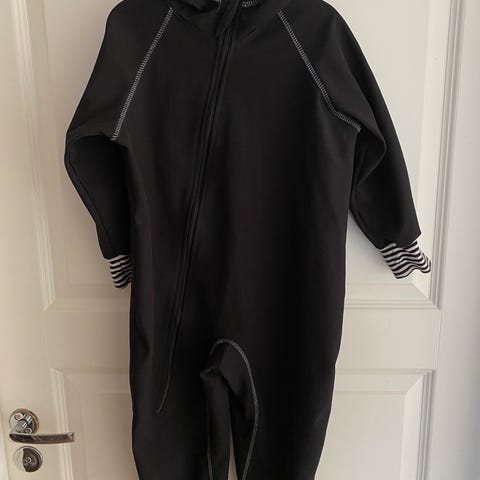 Koko merkitty 110, mutta haalari sopii paremmin 104 - 110 kokoiselle. Haalarin pituus 96 cm.