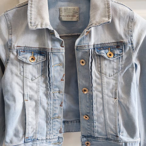 Oikein hyväkuntoinen lasten farkkutakki. Ei mielestäni mitään vikaa, valmina olleita kulumajälkiä paikoitellen.