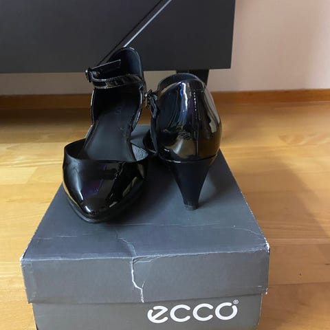 Mustat siistikuntoiset Ecco kiiltäväpintaiset korkokengät. Koko 40. Koron korkeus n. 5 cm. Ei postitusta.