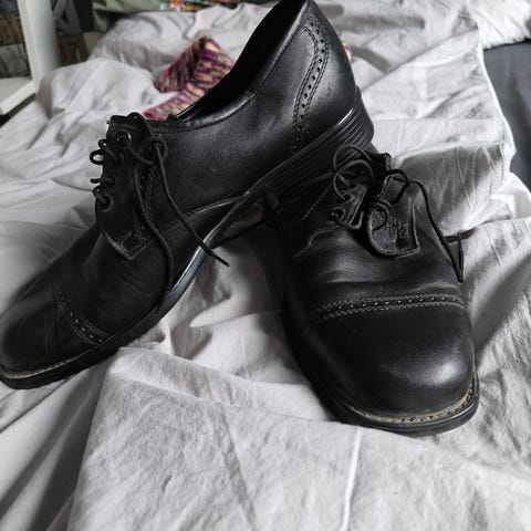House merkkiset (prisman merkki), pinta nahkaa, sisämitta 27 cm, vähän käytetty.