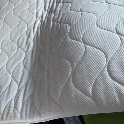 Lähes käyttämätön puhdas petauspatja ja siihen sopiva hygieniasuoja