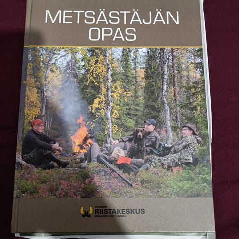 Riistakeskus Metsästäjän opas -kirja. Teos käsittelee metsästyksen perusteita ja käytäntöjä Suomen olosuhteissa. Kirjassa on tietoa muun muassa metsästyslainsäädännöstä, riistanhoidosta, metsästysmuodoista, turvallisuudesta sekä varusteista. Kovakantinen kirja, ISBN 978-952-7931-35-3, painettu vuonna 2022. Sopii metsästystä opiskeleville ja aiheesta tietoa hakeville lukijoille.