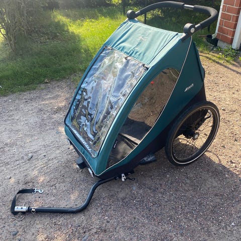 Myydään polkupyörään kiinnitettävät rattaat. Kyytiin mahtuu kaksi lasta.