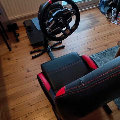 Thrustmaster TS300rs-rattiohjain ja poljinsetti ajosimulaattorikäyttöön. Paketissa on rattiohjain, erillinen poljinmoduuli sekä ajosimulaattoripenkkirigi, jossa on tummanpunainen istuin ja musta metallirunko. Rigissä on säädettävät telineet ratille ja polkimille. Sopii ajosimulaattoreihin ja kilpa-ajopeleihin tietokoneella tai pelikonsoleilla yhteensopivuudesta riippuen. Toimii ainakin ps5 kanssa.