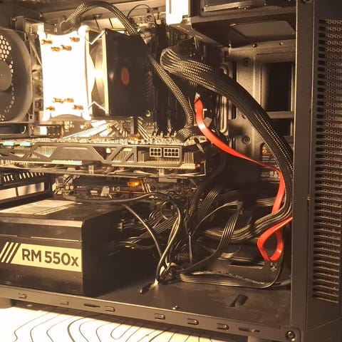 MSI pöytätietokone mustassa kotelossa. Kotelossa on läpinäkyvä sivupaneeli ja punaisella valaistuksella varustettu etupaneeli. Intel i7 4770K-prosessori. Näytönohjain NVIDIA Gforce GTX980. 16GB RAM. Tietokoneessa on useita USB-liitäntöjä takapaneelissa sekä ääniliitännät. Käyttöjärjestelmänä on Windows 10 Home. Tarkempia tietoja prosessorista, muistista, tallennustilasta ja näytönohjaimen mallista kuvissa. Minecraft pyörii hyvin. Fortnite pyörii hyvin kunhan levy ei ole liian täynnä ja resoluutio ei liian iso.