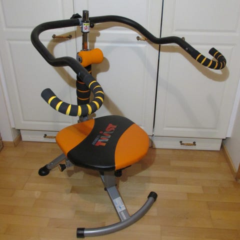 Ab Doer Twist kotikuntoilulaite kotikäyttöön. Laitteessa on pyöreä istuinosa sekä selkänojaan yhdistetty ylävartalon tuki ja käsikahvat. Väri on oranssi-musta. Soveltuu keskivartalon ja ylävartalon lihasten harjoittamiseen kierto- ja taivutusliikkeillä sisätiloissa. Laite on lattiatasossa seisova ja sitä käytetään istuen.