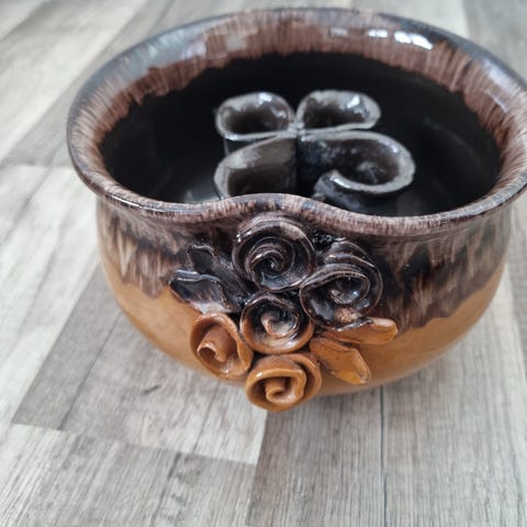 koriste-esine metallinen, hopeanvärinen. Maljamainen muoto ja jalallinen alusta tekevät esineestä sopivan esimerkiksi pöytä- tai hyllykoristeeksi. Materiaalina kiiltävä metalli, sileä pinta. Soveltuu sisustuselementiksi eri huoneisiin, kuten olohuoneeseen tai eteiseen.