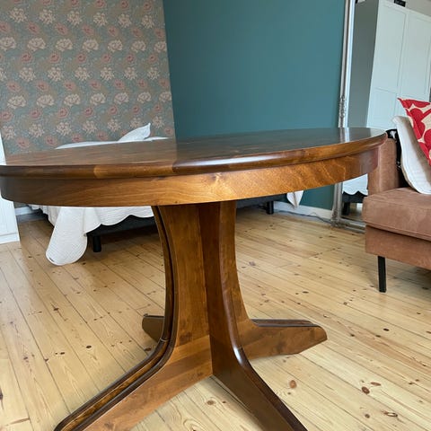 Myyydään Ikean Bjusrta jatkettava pyöreä pöytä. Halkaisija: 115cm+ 50cm jatkopala. Löytyy hieman käytönjälkejä.