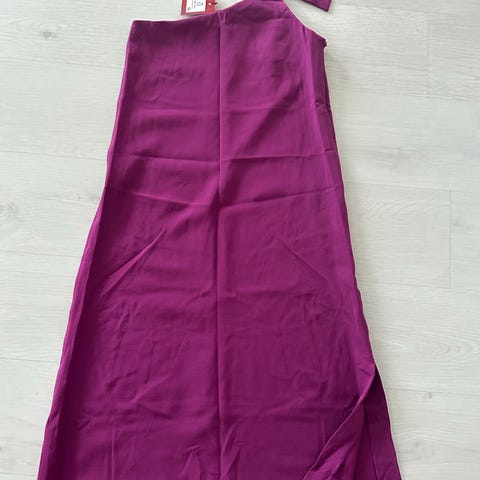 Mekkp ohuesta kankaasta. Sisällä alusmekko. Hyväkuntoinen. Ei kokomerkintöjä koska ostettu itse ommeltuna. Kai- kai 48 cm. Olka- helma 128 cm.