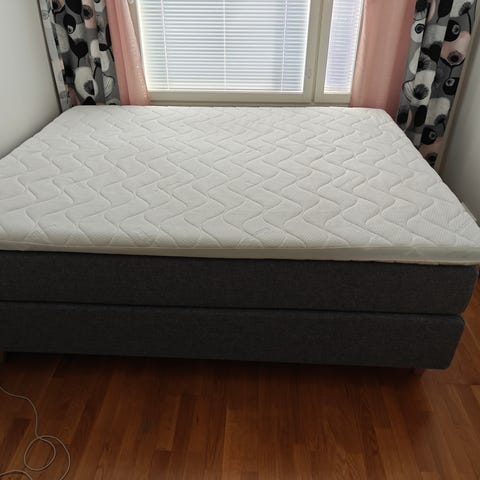 Myydään 1/2026 Vekestä ostettu jenkkisänky 180 cm (runko, patjat ja petauspatja). Toisen patjan suos. käyttäjän paino 60 kg tai enemmän, toisen puolen 70 kg tai enemmän. Käytössä ollut patjansuojus. Väri vaalea beige. Kunto uutta vastaava. Pyynti 1000€ (Ovh. oli noin 2000€). Sijainti Oulu, Alppila.