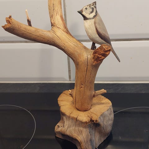 Sympaattinen puulintu, mitat 15cm x 11cm.
