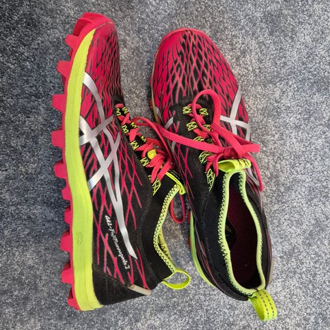 Tukevat Asics juoksukengät, koko 39. Väri vaalea persikka/vaaleanpunainen. Muutaman kerran jalassa olleet. Toisen kengän kärjessä pientä likaa, niin pientä ettei kameralla saa kuvattua.