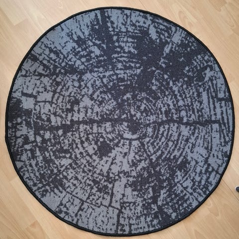 2 kpl pyöreitä harmaita polyesterimattoja, halkaisija 80 cm. Hinta 10 e/kpl. Myydään parina.