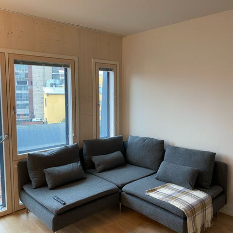 Myydään Ikean Söderhamn kulmasohva Gunnared beige- kankailla.