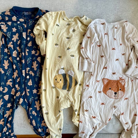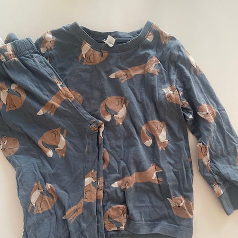 Pyjama setti, koko 98/104. Materiaalina puuvilla. Settiin kuuluu kolme pyjamakokonaisuutta. Dinosaurus pyjama Lindex uutena ostettu yhdellä käytetty. Punainen ja luuranko jo enemmän käytettyjä mutta hyvä kunto.