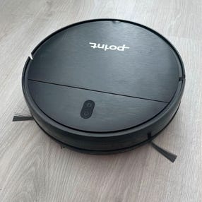 Hyväkuntoinen valkoinen point robotti-imuri. Merkki point. Ei tietoa mallista, muutaman vuoden vanha, vähän käytetty.
