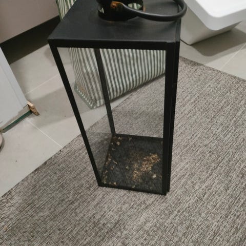 Kookas puulyhty. Ainoastaan sisällä pidetty, eikä lyhdyssä ole kynttilää poltettu. Koristeena ollut. Hieman on kulumaa, mutta ehjä ja siisti on.