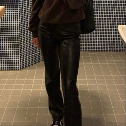 Mustat More-merkkiset nahkahousut takataskuilla. Kokovuori.