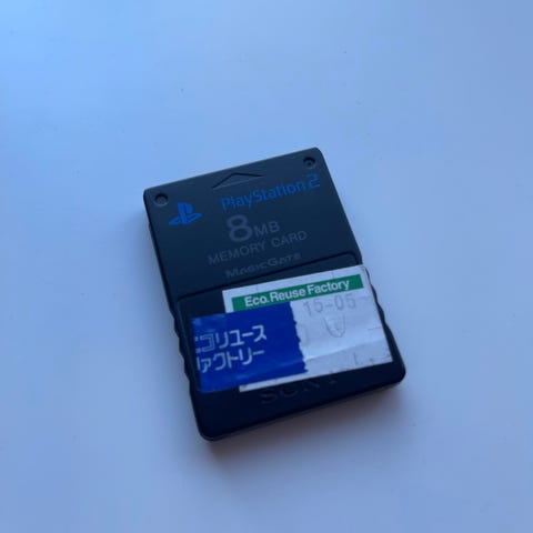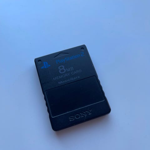 8 MB muistikortti. Kortti on sinistä läpikuultavaa muovia. Tuotu Japanista