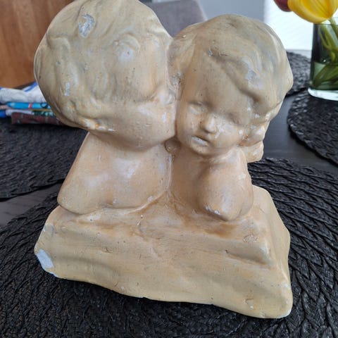 Neitsyt Marian korkeus on 12 ja leveys 8 senttiä. Miesfiguurin korkeus on noin 20 ja leveys noin 7 senttiä. Kumpikin on ehjä.
