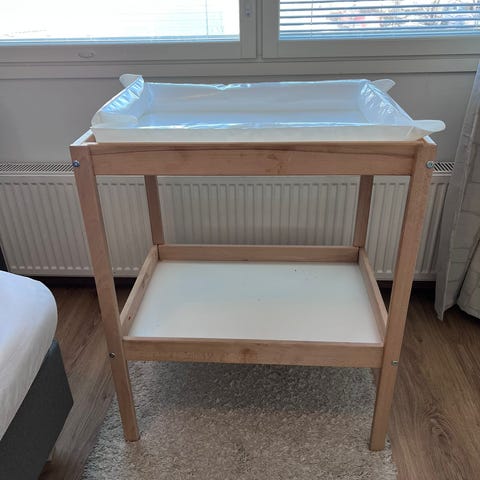 Annetaan kuvanmukainen hoitopöytä + patja + 4 patjansuojusta. Hoitotason saa pois niin voi käyttää lipastona. Nouto Töyrynummi.