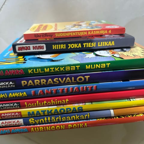 Kovakantinen Aku Ankan albumi ”Menolippu suuriin seikkailuihin”. 160 s. Upouusi, ei edes selailtu.