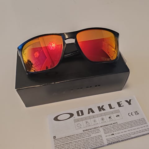 Punaisella linssillä varustetut Oakley sutro lasit. Saa tarjota!
