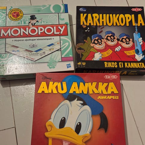 Varsin harvinainen ja upea Disney-versio Monopolysta. Pelilaudan kun avaa, niin linna nousee pystyyn ja pelinappulat on sinkistä valmistettuja Disney-hahmoja.