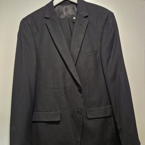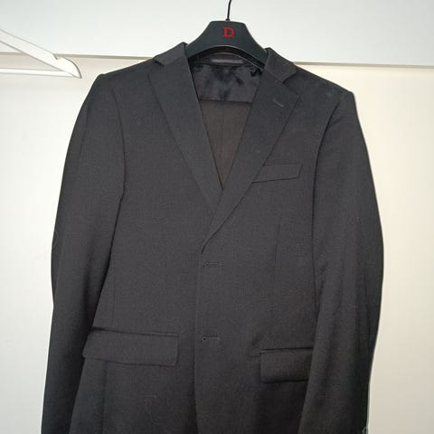 Musta miesten puku, koko 54 Regular, Slim fit, Dressmann, kerran käytetty, housuja ei ole muokattu tai lyhennetty, nouto Hervantajärveltä