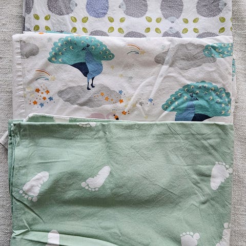 Hyväkuntoisia vauvan peittoon sopivia.
