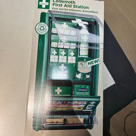 Cederroth First Aid Station ensiapuaseman täyttöpakkaus. Pakkauksessa on erilaisia ensiaputarvikkeita Cederroth First Aid Station -ensiapuaseman täydentämiseen. Soveltuu esimerkiksi työpaikoille, julkisiin tiloihin tai kotiin olemassa olevan Cederroth-ensiapuaseman varusteiden uusimiseen ja täydentämiseen. Tarkka sisältö käy ilmi pakkauksen merkinnöistä.