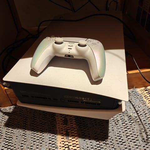 Hyväkuntoinen Playstation 5 PS5 pelikonsoli. Levyasemalla, tarvittavat kaapelit mukaan, samoin ohjainten laturi mutta ei ohjaimia.