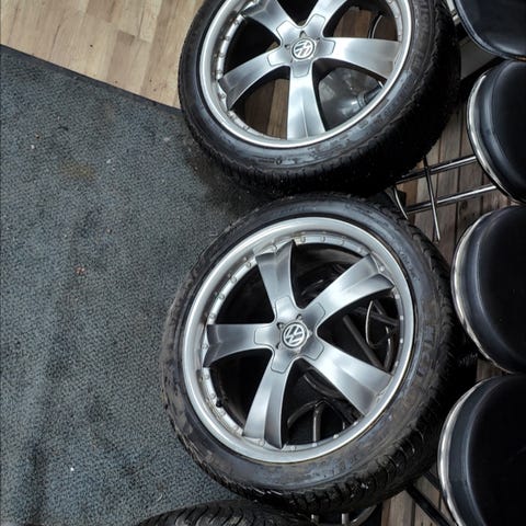 Myyntiin auton mukana tulleet vanteet ja renkaat.