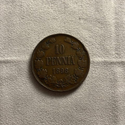 Suomi 10 penniä kolikko 1898, harvinainen/vähälyöntinen