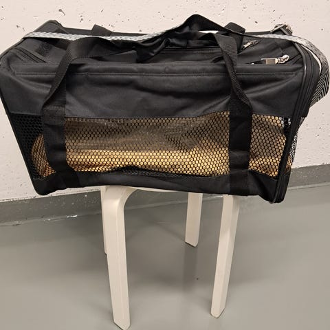 Myydään trixie kuljetuslaukku / kuljetuskoppa / kevythäkki kissalle / pienelle koiralle. Ollut kissalla. Täysin ehjä, napakka, pohja alusta irtoaa. Toisessa kyljessä pientä tahraa. Ulkomitat n 39x19x23.