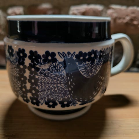 Myydään siisti arabia raija uosikkinem iso sinilintu kuppi ja aluslautanen