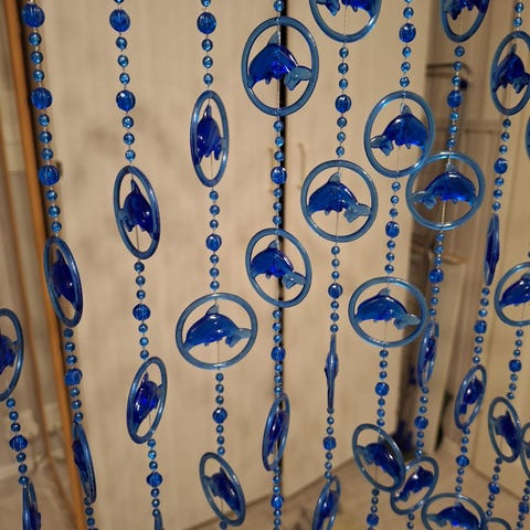 Pinkki helmiverho, leveys 90 cm ja korkeus 205 cm
