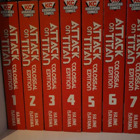 Attack on Titan manga boxsetit, volyymit 1-12. Mangat ovat englannin kielisiä.