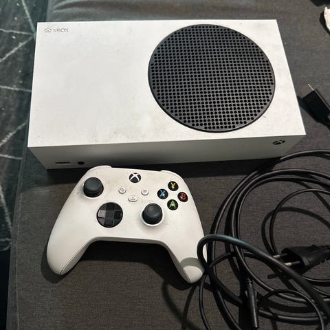 Microsoft Xbox Series S pelikonsoli valkoinen. Kompakti digitaalinen Xbox Series -konsoli, jossa valkoinen runko ja musta ilmanvaihtoaukko etupaneelissa. Mukana valkoinen langaton ohjain. Soveltuu Xbox Series -pelien pelaamiseen sekä digitaalisten pelien ja sovellusten käyttöön yhteensopivan näytön tai television kanssa.