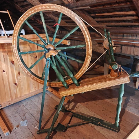 Puinen rukki. Perinteinen käsikäyttöinen rukki, jossa suuri pyörä, puinen runko ja jalusta. Sopii esimerkiksi kehräysvälineeksi, jos on vaadittavat osat tallella ja kunnossa, mutta tämä lähinnä sisustusesineeksi.