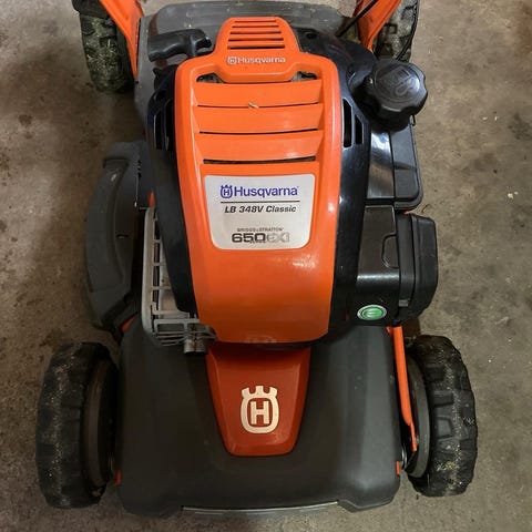 Jonsered LM 2150 M ruohonleikkuri. Polttomoottorikäyttöinen työnnettävä malli. Säilytetty lämpimässä autotallissa.